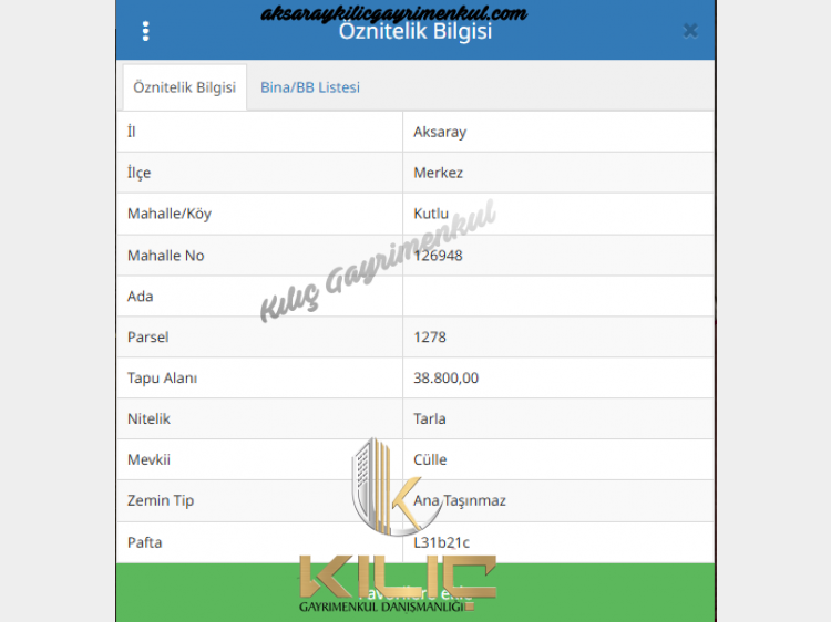 Aksaray Merkez Kutlu Köy'de Satılık Tarla !